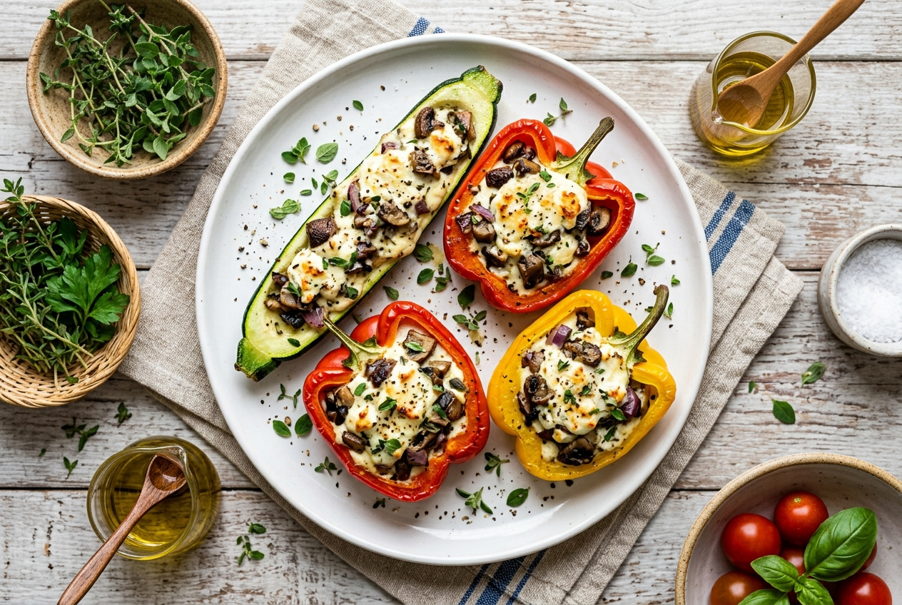 21 Day Fix Zucchini Mushroom Pepper Boats with Goat Cheese