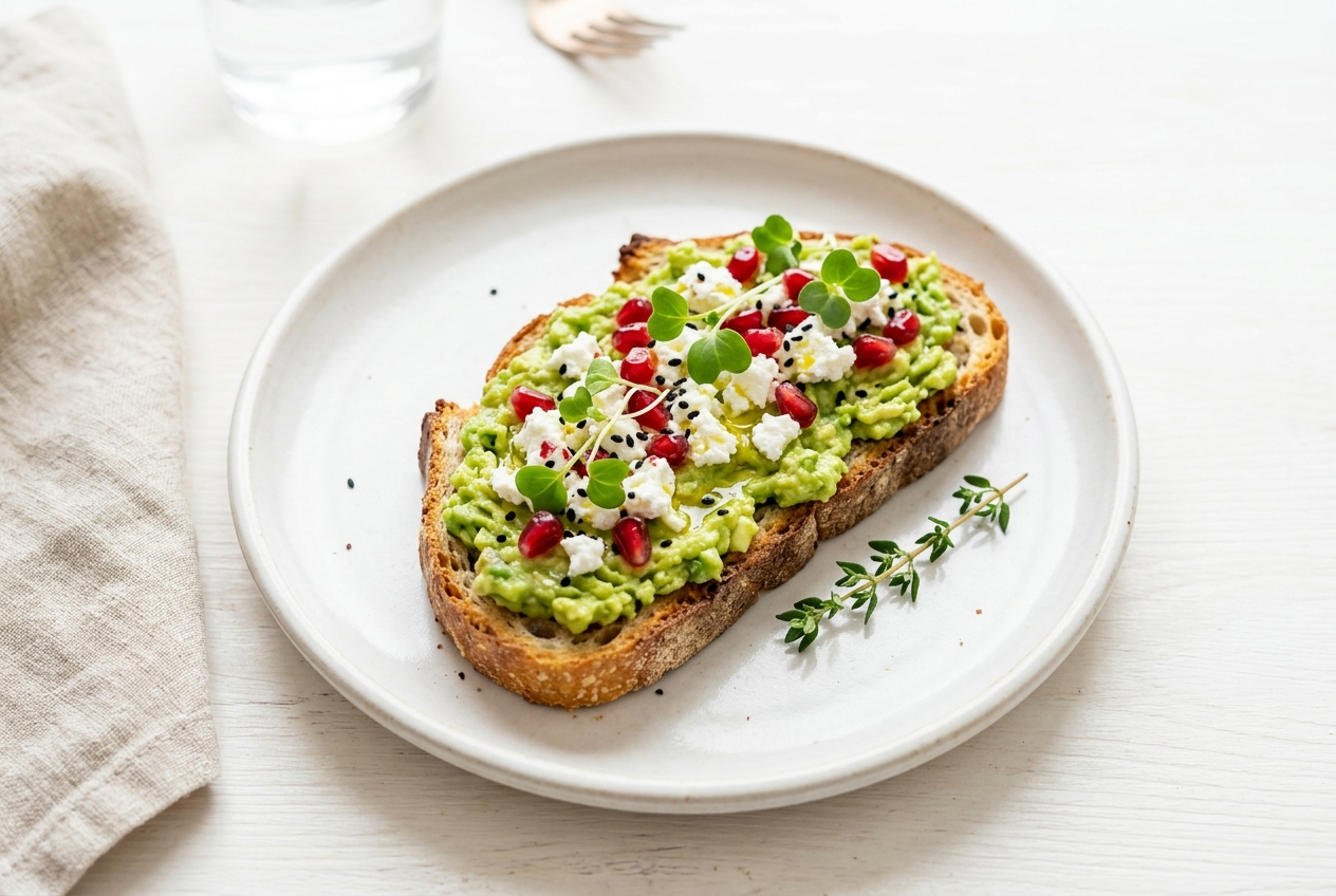 - Toast bread until light golden brown and crispy. Smash avocado with a fork and divide among bread slices.